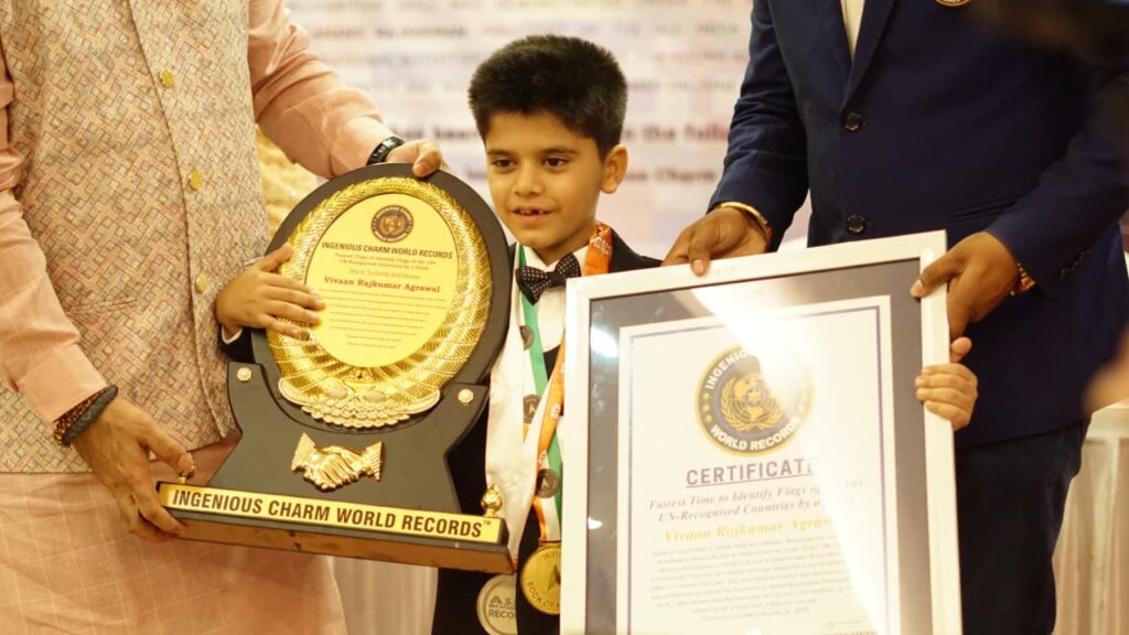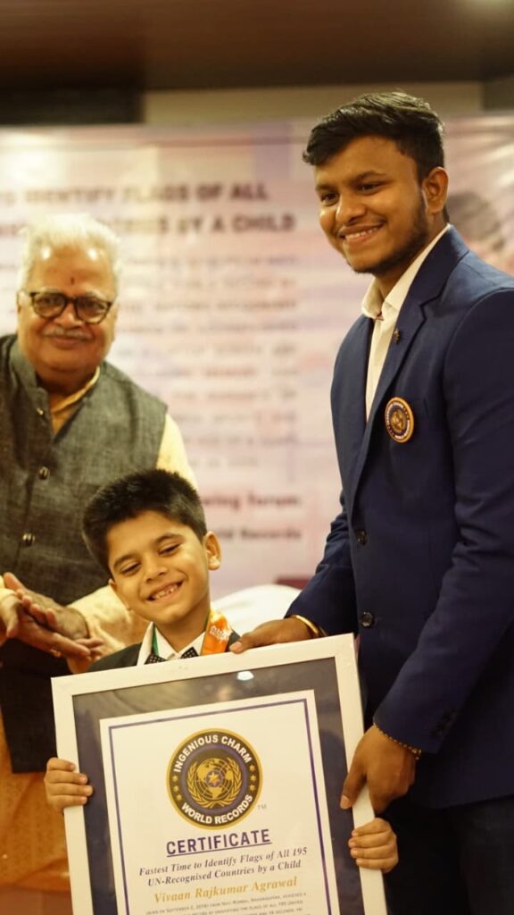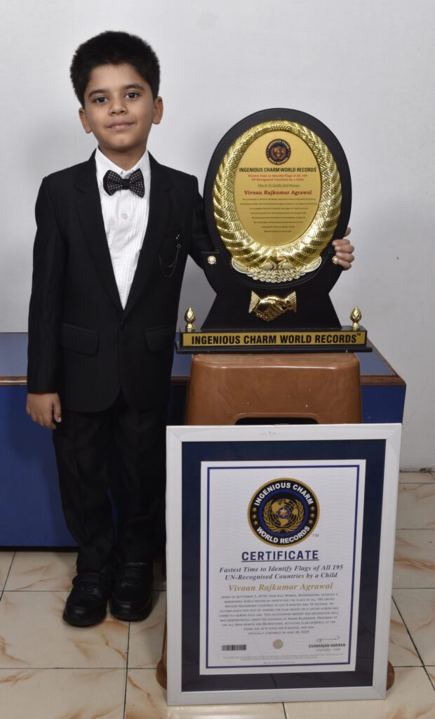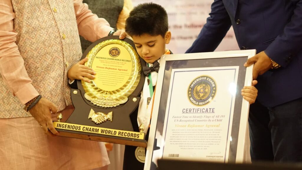 At the young age of 6 years and 9 months, Vivaan demonstrated exceptional memory power, observation skills, and cognitive speed by correctly identifying the flags of all 195 United Nations-recognised countries in just 6 minutes and 16 seconds. He accomplished this extraordinary feat by viewing flag images on a laptop screen and accurately naming each country without hesitation.